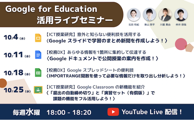 ※ Google for Education、YouTube、Google スライド、Google ドキュメント、Google スプレッドシートは、Google LLC の商標です。