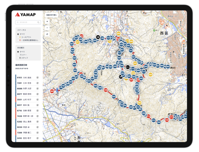 ※同システムは、トレイルランナーの位置情報を集約·可視化したサービスを救助従事者向けに転用しています。