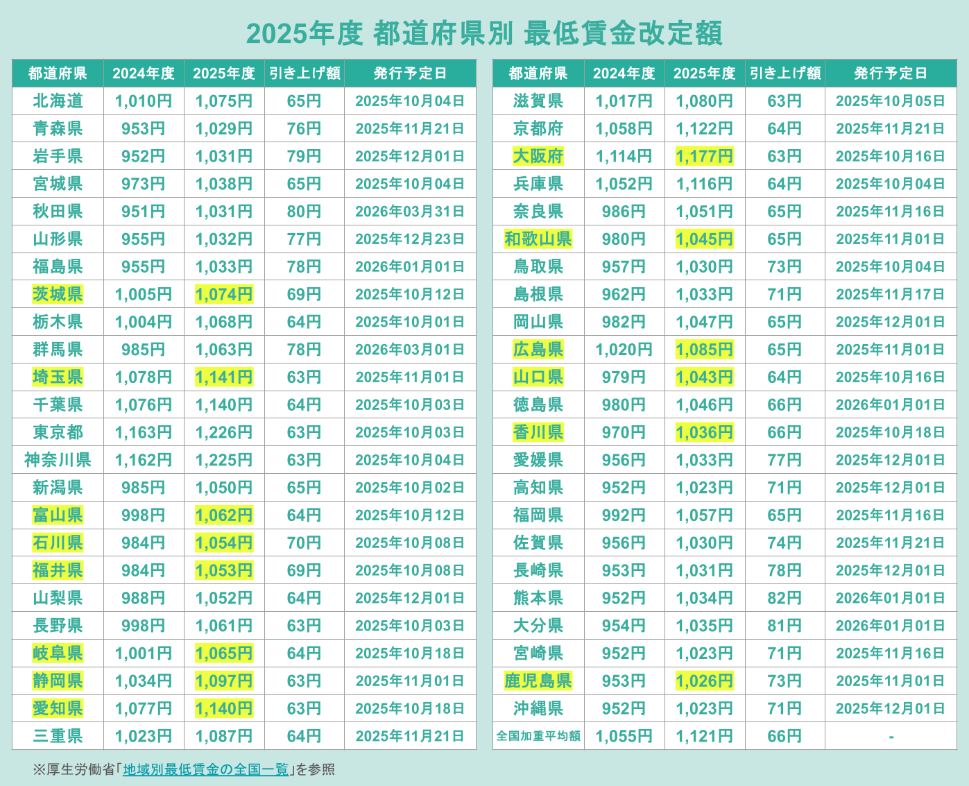 ※最低賃金の改定については厚生労働省「地域別最低賃金の全国一覧」を参照