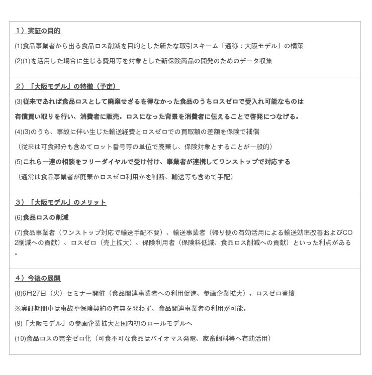 ロスゼロ・東京海上日動火災・マグチグループ・大阪府・大阪商工会議所が「食品ロス削減大阪モデル」の協定を締結、実証実験を開始。6/27セミナー開催も。