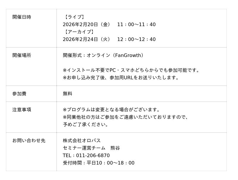 [表: https://prtimes.jp/data/corp/75553/table/106_1_b11e0a1d1d31373cb355aaf5d7a4aec2.jpg?v=202602130945 ]