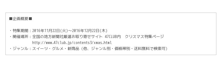 日本各地のこだわりの品で迎える2016クリスマス( http://www.47club.jp/contents3/xmas.html )