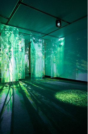 今回の企画は大規模な展覧会でのプロジェクションマッピング空間演出で、10台のプロジェクターを使用した壁面・床面・紗膜・立体造形の蝶の映像空間と、人の動きに合わせて映像が変化するインタラクティブシステムを使用した床面での遊びの要素を織り混ぜ、「体感する昆虫展」にふさわしいアクティブな体験価値の創出を目指しました。