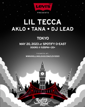 なお、本イベントにLevi’s(R)から特別に、リーバイス(R) レッドタブ(TM)メンバー20組40名様を抽選でご招待いたします。ぜひ501(R) Dayに、音楽とスタイルが交差する『LEVI’S(R) Presents, LIL TECCA, AKLO, TANA, DJ LEAD, A Rolling Loud Production』をお楽しみください。