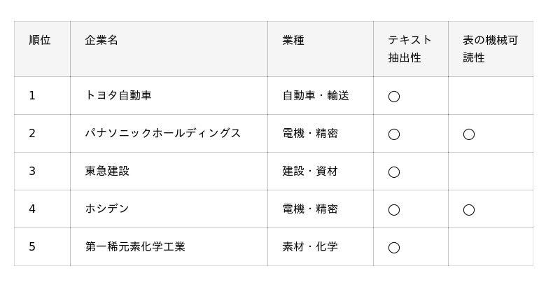※本ランキングは「統合報告書PDFという成果物の機械可読性」を対象とするものであり、企業の財務内容・ESGパフォーマンス・開示内容の正確性や充実度を直接評価するものではありません。