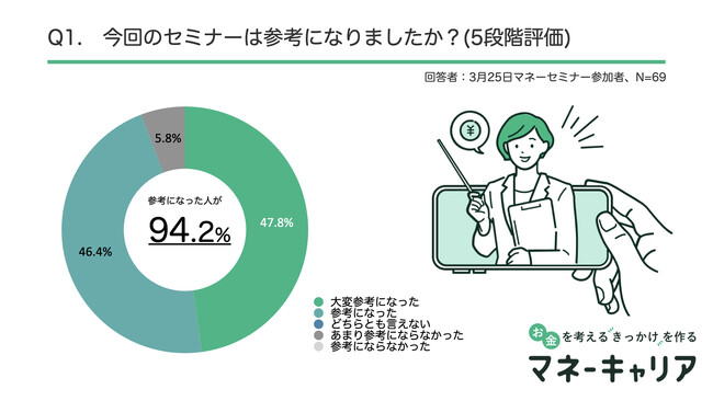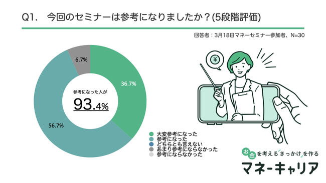 【開催レポート】3月実施のオンラインマネーセミナーにて実施した2つのセミナーで「参考になった」と答えた人が9割以上に