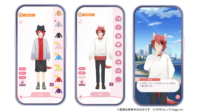 メンバーの衣装を自由に着せ替えることができます。着せ替えたスタイルで、ホーム画面に設定して会話を楽しめることはもちろん、デートストーリーでは着せ替え後のスタイルでお話を読み進めることができます。