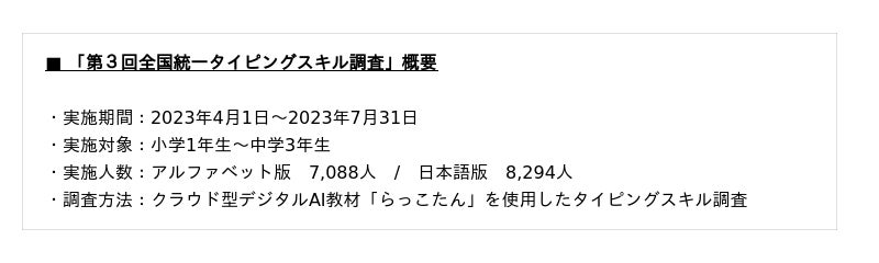 日本全国の小中学生がチャレンジ!「第3回全国統一タイピングスキル調査」調査結果を公開