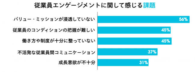 ・従業員エンゲージメントについて課題を感じると92%が回答、中でもバリュー・ミッション浸透に課題が