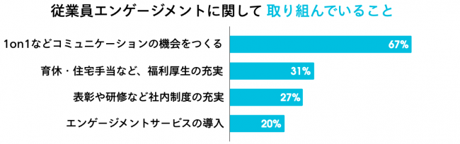 ・組織課題の解決のためにもっとも多く取り組まれていたのがコミュニケーション機会の増加で67%