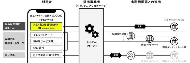 ・ 口座振替APIにより直接みんなの銀行口座からの引落しが可能となるため、クレジットカードやBNPLサービスの決済のように、収納代行企業等が間に入らず、また、外部の決済ネットワークを介さないことから、提携事業者は、コストメリットを享受することができます。