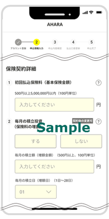 *2 『AHARA(アハラ)』は市場リスクを有する生命保険商品(特定保険契約)です。特定保険契約の申込みから契約成立までをネット完結できる商品は日本初となります(2023年3月時点。プライマリー生命調べ)。