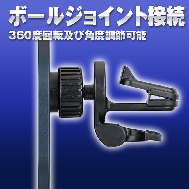ホルダー接続にボールジョイントを採用しており、360度回転や上下左右の角地調節に対応。