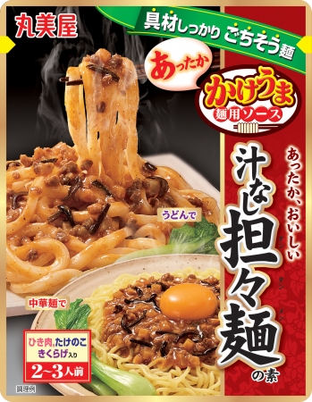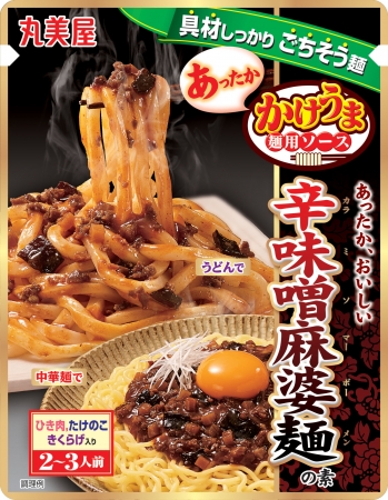 丸美屋食品工業株式会社(本社:東京都杉並区、社長:阿部豊太郎)では、お好みの麺にかけるだけで手軽に楽しめる「期間限定 あったかかけうま麺用ソース<ジャージャー麺の素>」「期間限定 あったかかけうま麺用ソース<汁なし担々麺の素>」「期間限定 あったかかけうま麺用ソース<辛味噌麻婆麺の素>」を2015年9月3日(木)から2016年3月31日(木)までの期間限定で発売いたします。