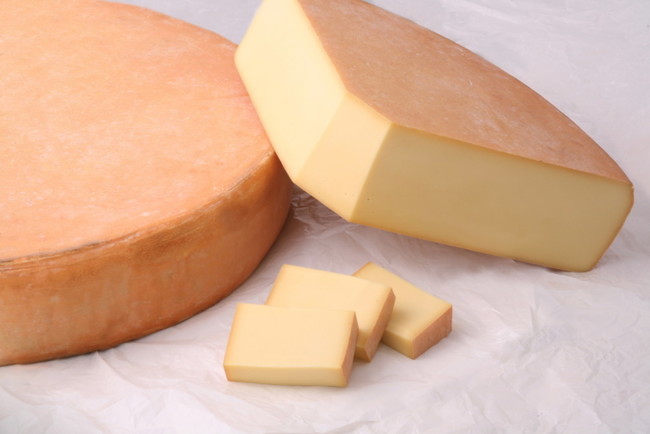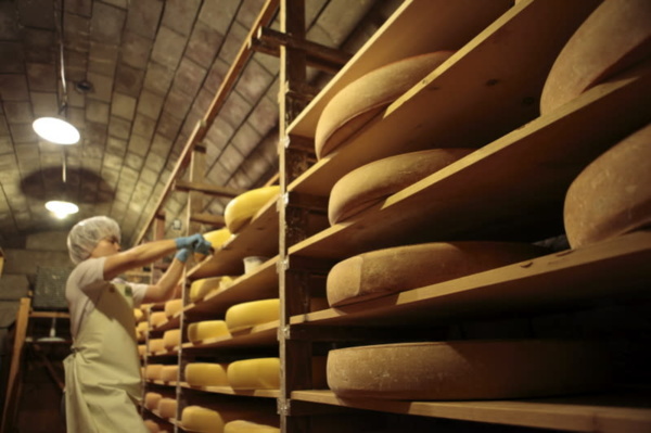 「シントコ」は直径約60cm、重さ約30kgの大型チーズです。フランスの代表的なハードタイプのチーズ「コンテ」をモデルに開発されました。放牧している春(5月)から秋(10月)のミルクのみでつくり、10ヶ月以上熟成させたもので、栗のような香ばしさのある味わいが特徴です。
