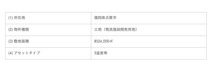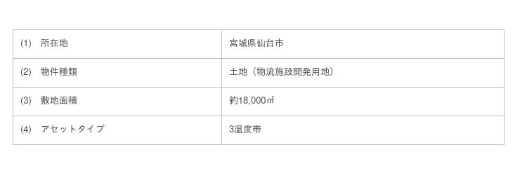 宮城県仙台市プロジェクトと福岡県古賀市プロジェクトは、それぞれ開発SPCである合同会社LOGI FLAG 6号、合同会社LOGI FLAG 7号への売却を予定しており、当社はこれらプロジェクトが開発フェーズに移行するタイミングで合同会社LOGI FLAG 6号および合同会社LOGI FLAG 7号それぞれとアセットマネジメント契約を締結し、物流施設開発(開発、運用、売却等)に係るマネジメント業務を受託予定です。