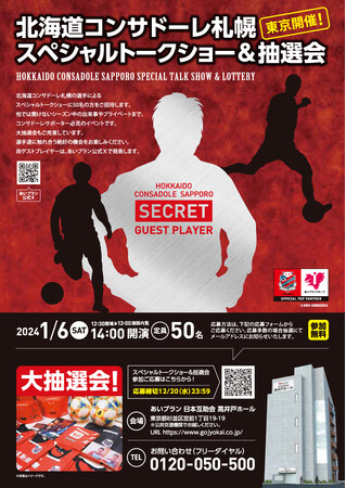 北海道コンサドーレ札幌のあの選手が来る!スペシャルトークショー&抽選会を東京都杉並区に2023年にオープンした「あいプラン 日本互助会 高井戸ホール」で開催。参加無料