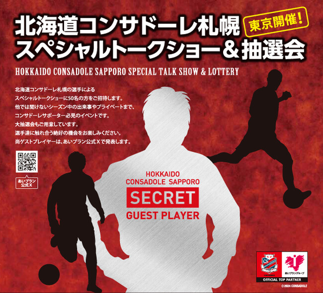 株式会社あいプラングループ(北海道札幌市/代表取締役・新道喜信)のあいプラン日本互助会 高井戸ホール(東京都杉並区宮前1丁目19-19)にて、北海道コンサドーレ札幌の選手によるイベントを開催します。他では聞けないサポーター必聴のトークショーの他、全員に当たる抽選会も開催。抽選で50名様をご招待いたします。