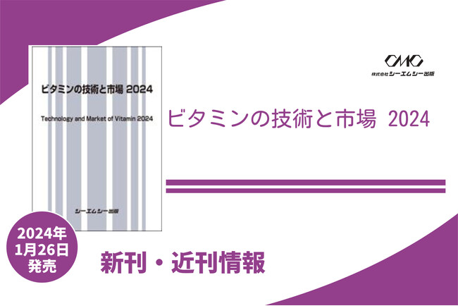 バイオテクノロジー・化学などの技術・市場動向レポート発行やセミナー開催を行う、株式会社シーエムシー出版(本社:東京都千代田区、代表:辻賢司)は、書籍『ビタミンの技術と市場 2024』を2024年1月26日に発刊いたします。