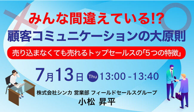 【無料セミナー】「みんな間違えている!?顧客コミュニケーションの大原則」開催〜売り込まなくても売れるトップセールスの「5つの特徴」〜