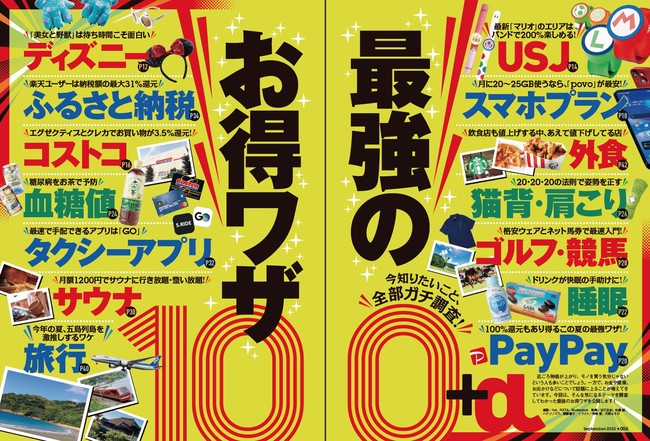9月号は、「最強のお得技100+α」を大特集! お金や健康、お出かけなど気になる情報を集めて、実際にやってみてお得だった技を惜しみなくご紹介しています。ほかにも、ドラレコ導入を考えている人必見の2022年最新版「ドライブレコーダーランキング」や、絶対損したくない人に捧げる「ウォーターサーバーの選び方超入門2022」など、今欲しい情報満載でお届けしています。本リリースでは、編集部が“本当におすすめできる”製品の一部をご紹介します。
