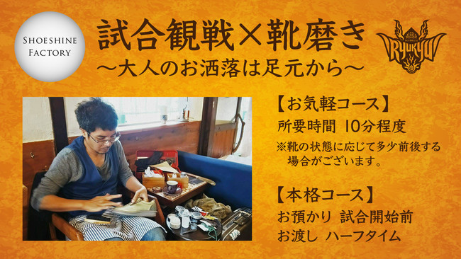 試合観戦のついでに大切な”靴”も綺麗にしませんか?靴磨き職人 仲程秀之さんご協力のもと、「靴磨きブース」が2日間限定で出店します。お気に入りの一足とともに是非お越しください。信頼できるプロのスタッフが皆様のご来店をお待ちしております。