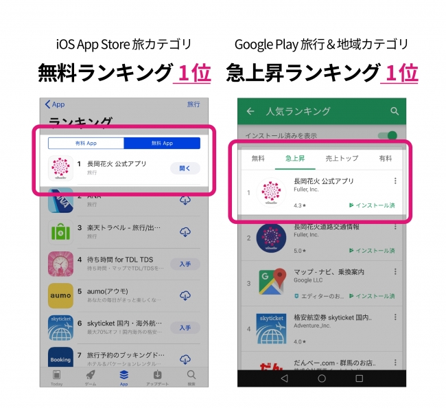 フラー株式会社(本社:千葉県柏市、代表取締役:渋谷 修太、櫻井 裕基、以下「フラー」)が開発支援を手掛けた「長岡花火公式アプリ」が、8月2、3日の両日に開かれた長岡まつり大花火大会(以下「長岡花火」)の期間中、5万人以上のユーザー様に利用されました。8月3日にはApp Storeの無料ランキング(旅カテゴリ)、Google Play急上昇ランキング(旅行・地域カテゴリ)でいずれも1位を獲得しました。長岡花火開催期間中に2年連続でストアランキング1位を獲得したことになります。