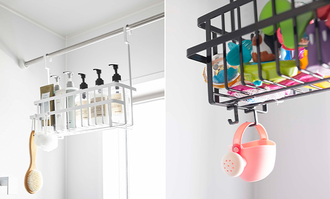 ランドリーパイプ・タオルバーに引っ掛けてバス用品や掃除用品を浮かせて収納できるワイドな大容量バスケット。
