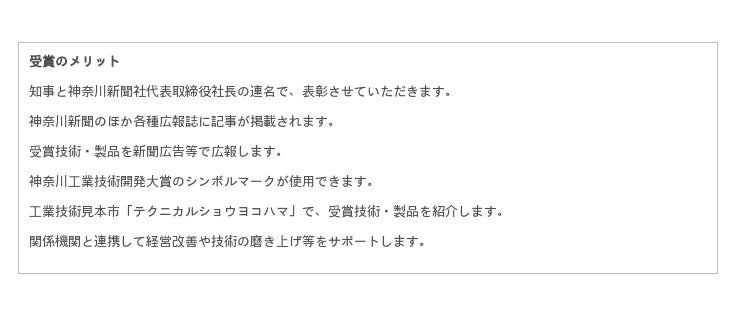 県では、昭和59年度から神奈川新聞社との共催により、県内の中堅・中小企業が開発した優れた技術や製品を表彰しています。このたび、今年度の募集を開始しますので、お知らせします。