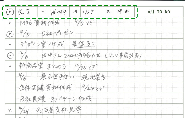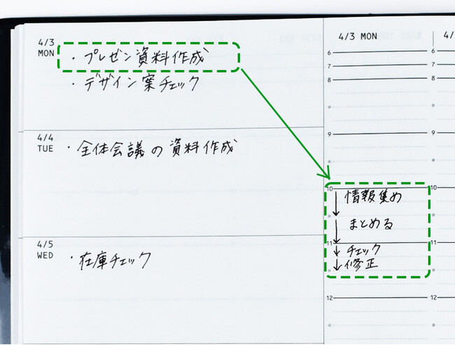 2.TODO(やる事)を細分化して時間の使い方を把握できる(週間バーチカルページ左枠)