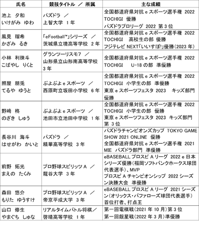 eスポーツは、2021年より本事業の対象となっており、今年度は過去最多となる9名の選手が、新たに支援対象に選定されました。また支援額も、前年度までの2倍(小中学生は1.5倍)に増額となっており、世界へ挑む選手たちの活動を、これまで以上に強力にサポートしていく内容となっています。