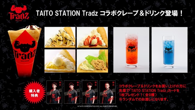 コラボ商品をご購入いただいた方には「TAITO STATION Tradzカード」を先着でプレゼントいたしますので、お見逃しなく!