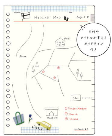 ノートとしてそのまま使える製本を採用。ページがバラバラになりにくく持ち歩きがしやすいです。