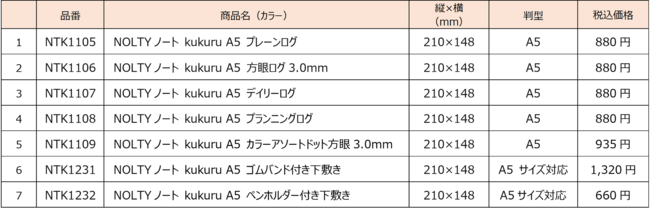 『NOLTY notebook kukuru』シリーズに、毎日を記録して楽しめるライフログ向けの新フォーマットなど、7種の新商品が登場!