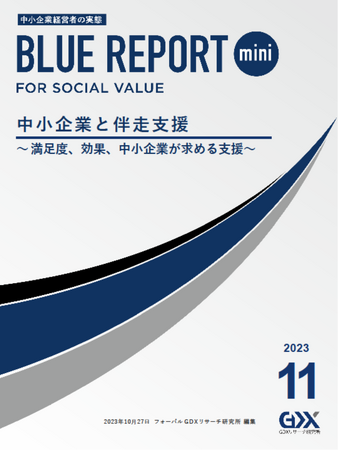 『「新しいあたりまえ」で、新しい世界を創る FORVAL 』を理念に掲げる、次世代経営コンサルタント集団である株式会社フォーバル(本社:東京都渋谷区、代表取締役社長:中島 將典、以下「フォーバル」)が運営するフォーバル GDXリサーチ研究所は、中小企業の伴走支援の活用状況について調査した「BLUE REPORT mini 11月号」を2023年10月27日(金)に発行しました。