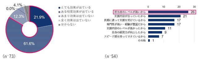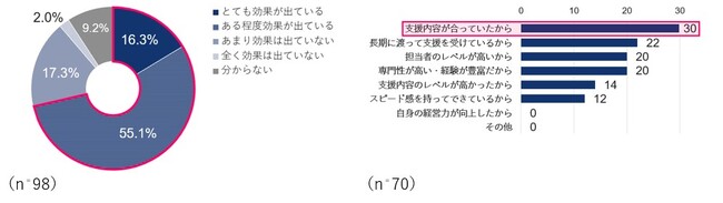 同様に、「DX推進」では71.4%が効果を実感、最も多い理由が「支援内容が合っていたから」です。