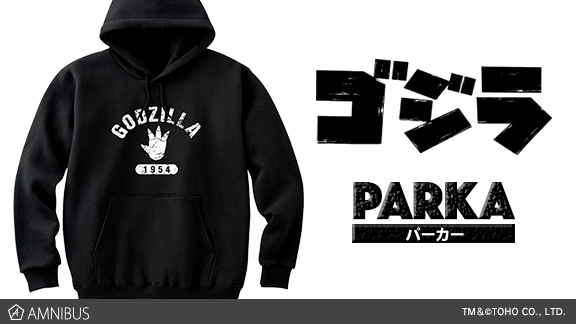 『ゴジラ』のカレッジロゴパーカーの受注を開始!!アニメ・漫画のオリジナルグッズを販売する「AMNIBUS」にて