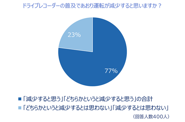 ドライブレコーダーの普及であおり運転が減少すると思うか聞いたところ、77%のドライバーが「減少すると思う」と回答し、ドライブレコーダー普及への期待が大きい結果となりました。