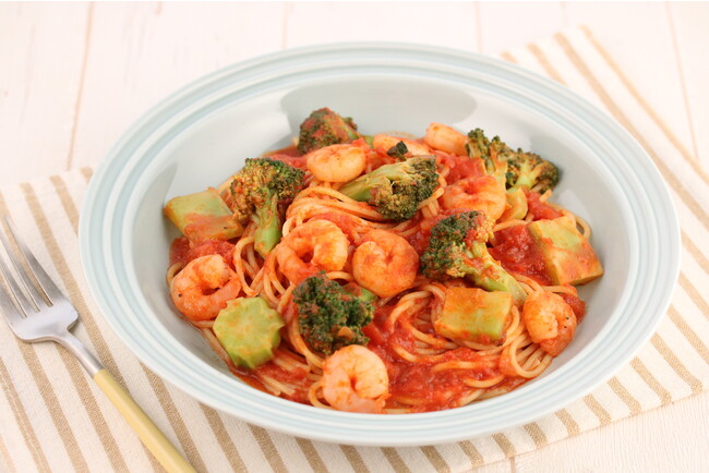 ◇まるごとブロッコリーとえびのトマトソースパスタ