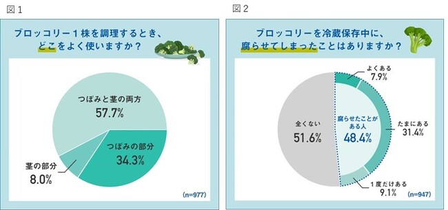 また、図2の同調査結果から、ブロッコリーを冷蔵保存で腐らせてしまった経験がある人は回答者全体の48.4%と、多くの方がブロッコリーを腐らせてしまった経験を持つことがわかります。フードロスを削減するためにも、新鮮なうちにブロッコリーを茹でて冷凍保存するのがコツです。つぼみは小さな房に切り分けて、茎はス※4の入った部分とかたい皮を取り除いてから、料理に使う大きさに切り、30秒ほど熱湯で茹でます。茹でた後は、すぐに冷まして水気をきちんと拭き取り、冷凍保存するといった情報を3社共同で発信をしていきます。