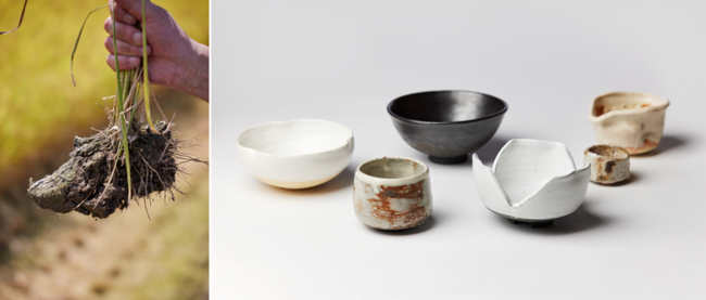 宮城県の新澤醸造店にて、注目の若手女性杜氏、渡部七海氏が手掛けた日本酒は、酒造りに通常使われるタンクよりも小さい、もろみ用のタンクを使用し、今までにない新しい技法により造られました。また、米や酒造りをはじめ、オリジナリティを追求する「武蔵 by アマン」では、鮨やおつまみを出す器と酒器は、米を育てた田んぼの土を使って、武蔵自らの手で制作したものを使用しています。
