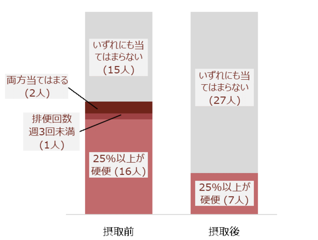 調査方法:排便に関するチェックシートへの記入(排便回数、排便の時間帯(朝・昼・夜)便の形状)