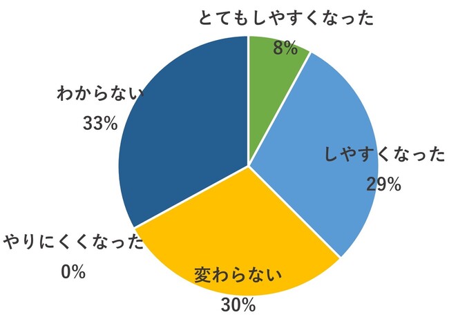 採用が「とてもしやすくなった」「しやすくなった」の回答が37%の一方、変わらない、わからないという声も多く見受けられました。