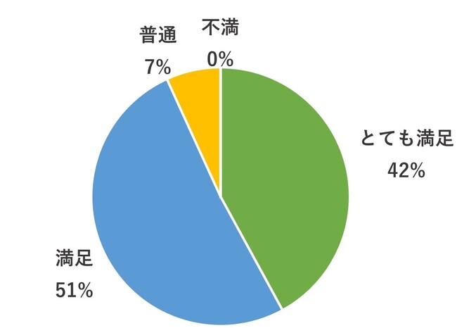 オフィスデザインや仕上がりの満足度について、「とても満足」「満足」が合計93%になりました。