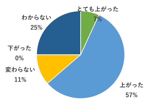 生産性向上は「とても上がった」「上がった」の回答が64%となりました。