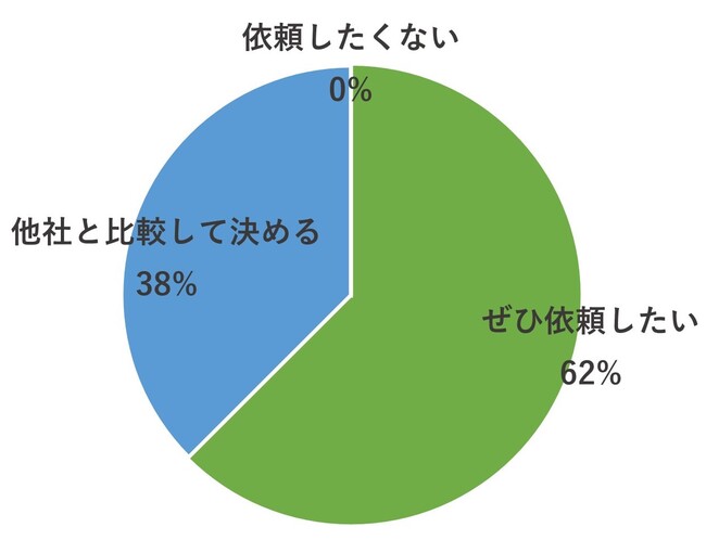 62%の方に次回も「ぜひ依頼したい」と回答いただきました。