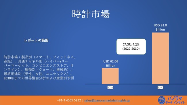 世界の時計市場は2030年までに918億米ドルの価値があると予想されています|年平均成長率(CAGR):4.2%