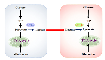 臭気物質の中にはがん特異的とされるものがあるため、本研究ではがんに特徴的なエネルギー代謝(ワールブルグ効果)、低酸素応答や乳酸代謝(図2)との関連に注目し、研究を続けてきました。