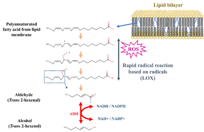「がん患者から臭いがする」「疾患を臭いでかぎ分ける犬」という話を聞いたことがあるという方もいるのではないでしょうか。過去の研究により、いくつかのがん臭気物質が、がん細胞における脂質二重膜上での脂質過酸化反応によって生じうることが明らかとなっています(図1)。しかしそれがなぜ、どのようにしてがん細胞で合成されるかまではわかっていませんでした。