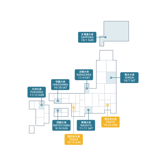 全国ブロック:東日本大会(東京)、西日本大会(大阪)